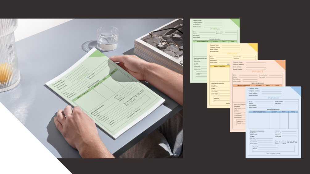 Printable Invoice Template, 4 Colors, PDF